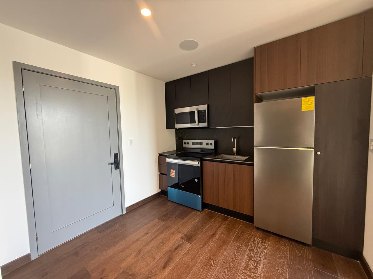 Cuentan con: 44mt2 de construcción + 1 parqueo, sala, comedor, cocina equipada, balcón, área de lavandería equipada, 1 dormitorio, 1 baño completo. Equipados con sistema de sonido Alexa.
