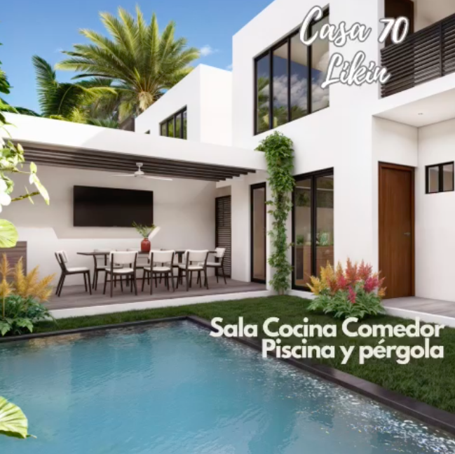 Cuenta con: 300v2 de terreno, 212mt2 de construcción, Sala, cocina con top de cuarzo, area de comedor exterior con barra de concreto, Piscina con Solarium, jardín, 3 dormitorios amplios, 2.5 baños, área de lavandería y 2 parqueos.