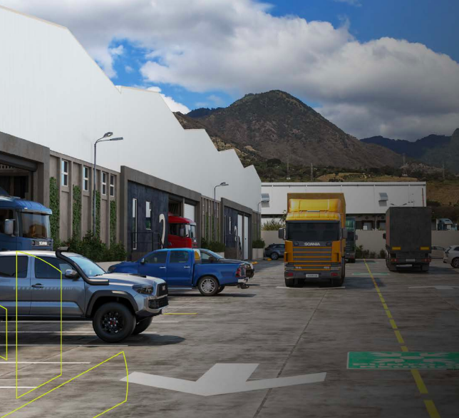 Cuenta con amplias calles de 12.5mt para contenedores de hasta 53 pies, control de acceso, garita de seguridad, circuito cerrado de cámaras y capacidad para vehiculos de carga y descarga.